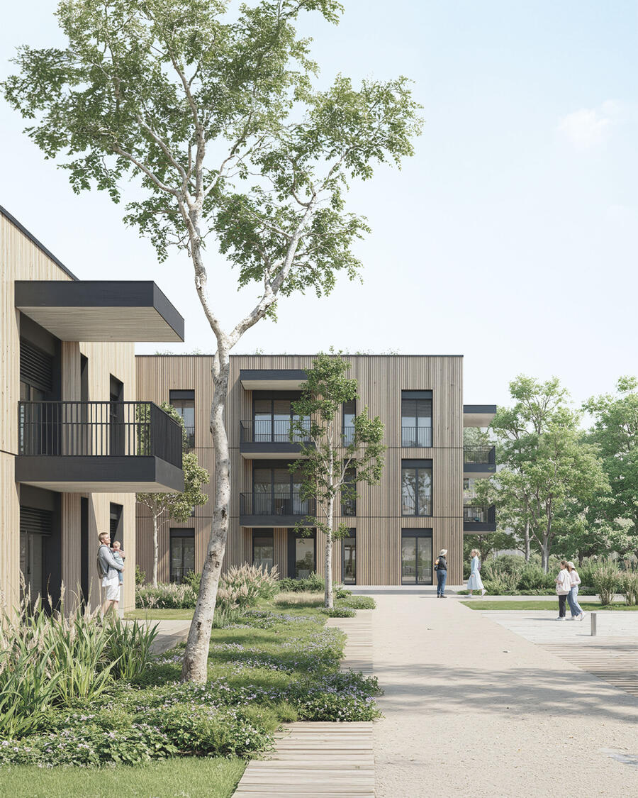 Le residenze Baia Silvella sorgono nella fascia di transizione tra litorale e paesaggio agricolo di Cavallino Treporti, sostituendo costruzioni esistenti con nove edifici a basso impatto. Il progetto valorizza dune, pinete e zone umide, tutelando biodiversità e visuali paesaggistiche. L’intervento crea un’area di transizione ecologica tra diverse aree ecosistemiche attraverso l’inserimento planimetrico degli edifici che garantisce percorsi ecologici. Un linguaggio architettonico essenziale e integrato con spazi boschivi e aree comuni rafforza qualità urbana e sociale.